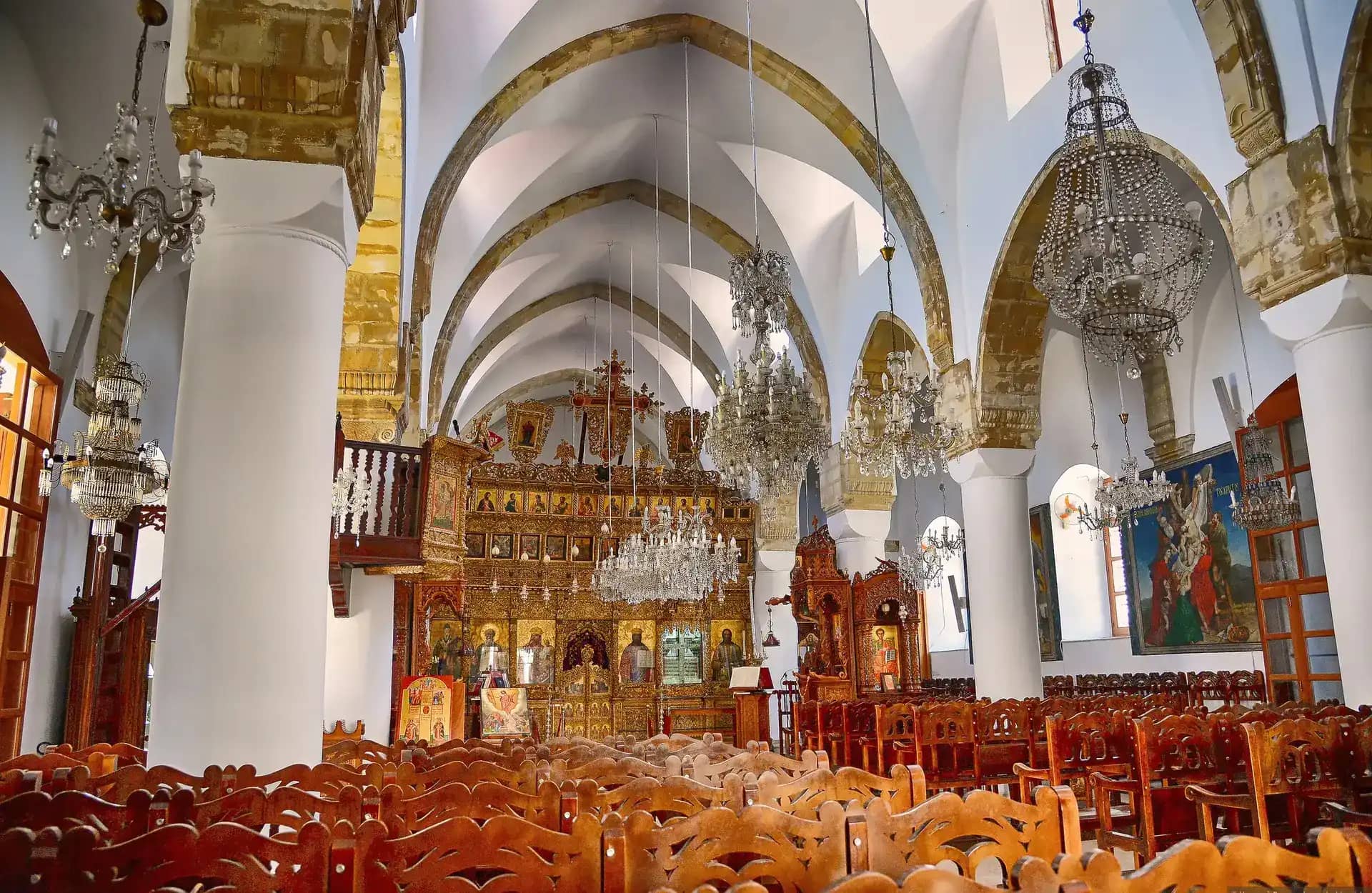 Главную ценность представляют уникальные фрески XII–XIV веков и иконостас, украшенный гербами византийской империи и династии Лузиньянов. Богатые росписи монастыря Иоанна Лампадиста никого не оставят равнодушными – это настоящие произведения искусства, созданные в итало-флорентийском стиле. Монастырь внесён в список всемирного наследия ЮНЕСКО. В настоящее время не действует, но по праздникам там проводятся службы.