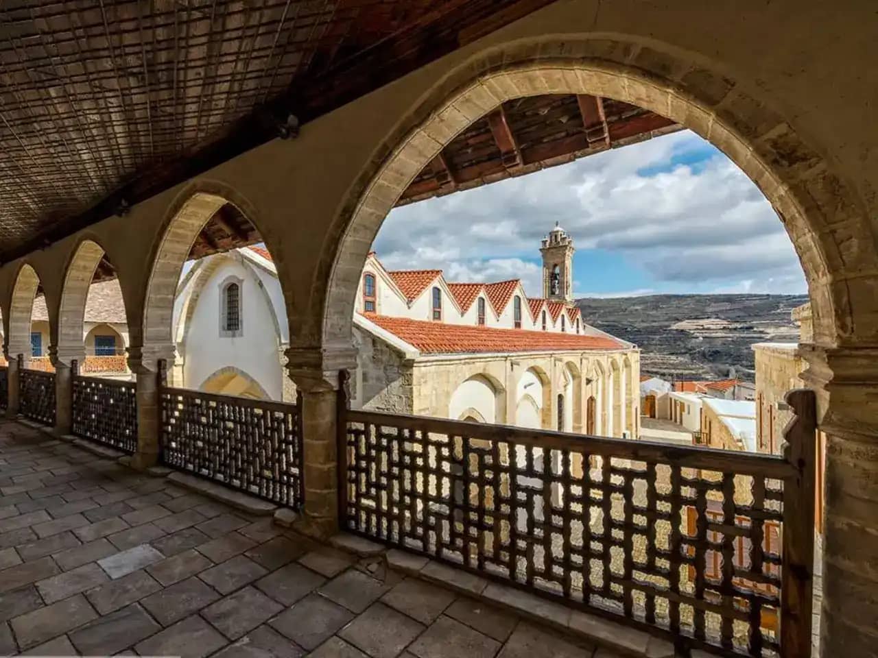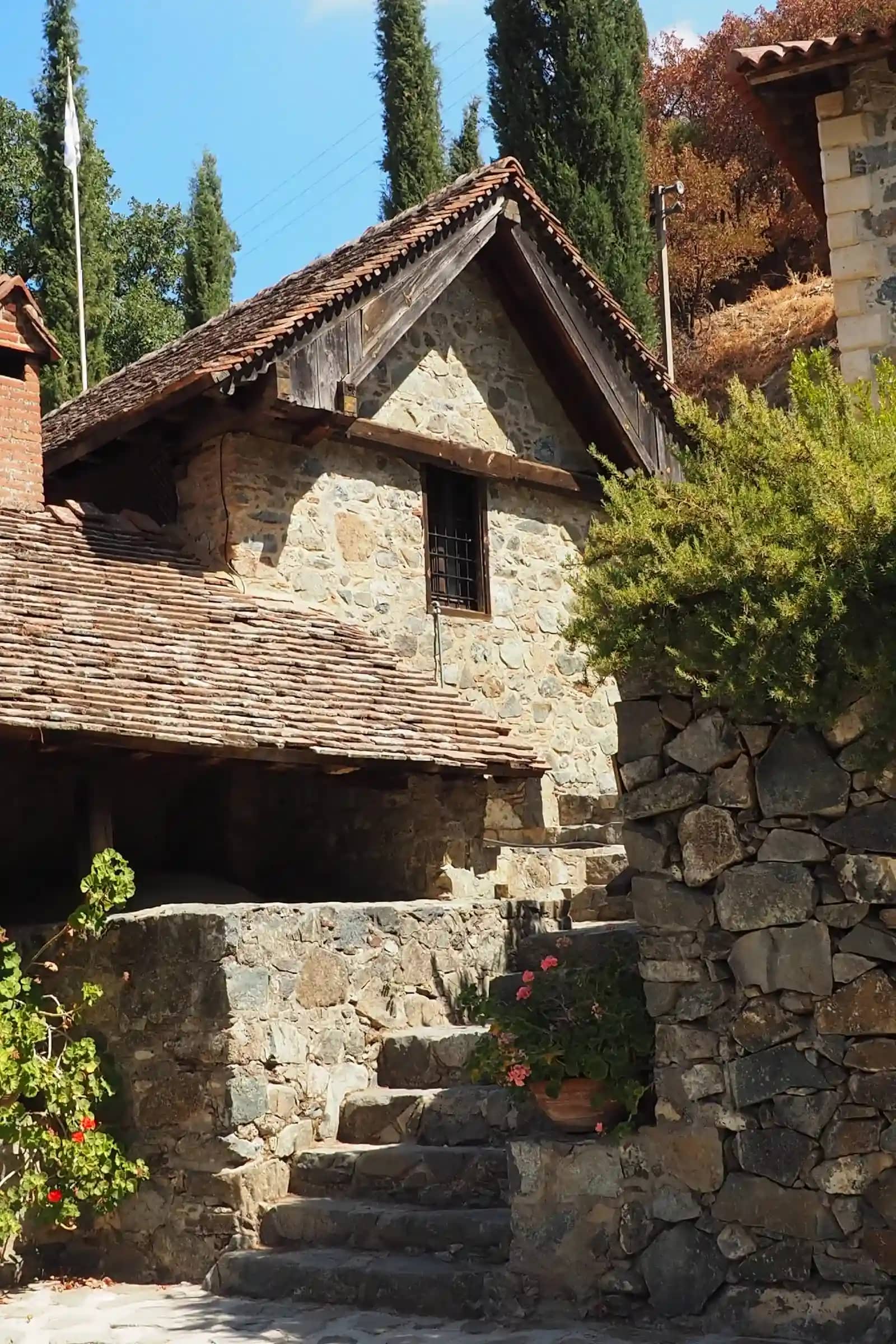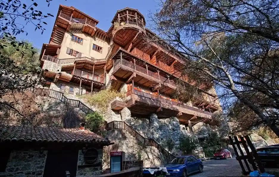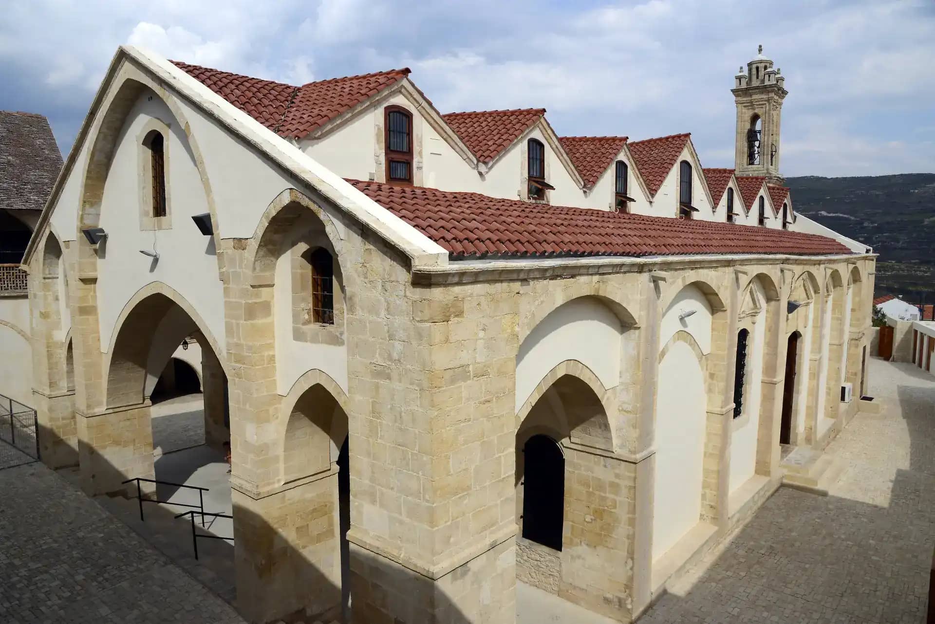Мужской монастырь Пафской митрополии Кипрской православной церкви. Это самый высокогорный монастырь Кипра расположенный в горах Троодос, на одном из притоков реки Диаризос, в пяти километрах от деревни Пано Платрес, на высоте 1400 метров над уровнем моря. Его название дословно переводится как «Живущая в горах Троодоса». Из-за высоты, на которой расположен монастырь, его называют «первой ступенькой к Небесам». По преданию он был основан двумя отшельниками в 1250 году. Они жили в окрестностях нынешнего монастыря, им явилась Богородица и указала место строительства обители.