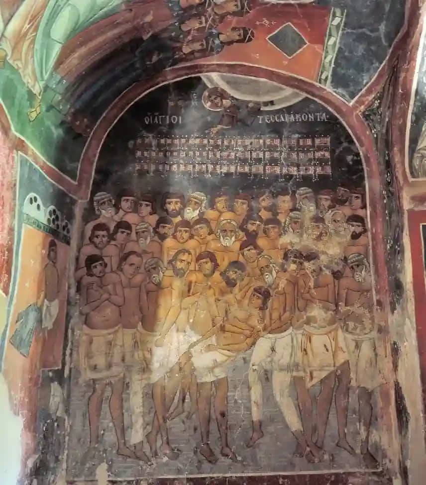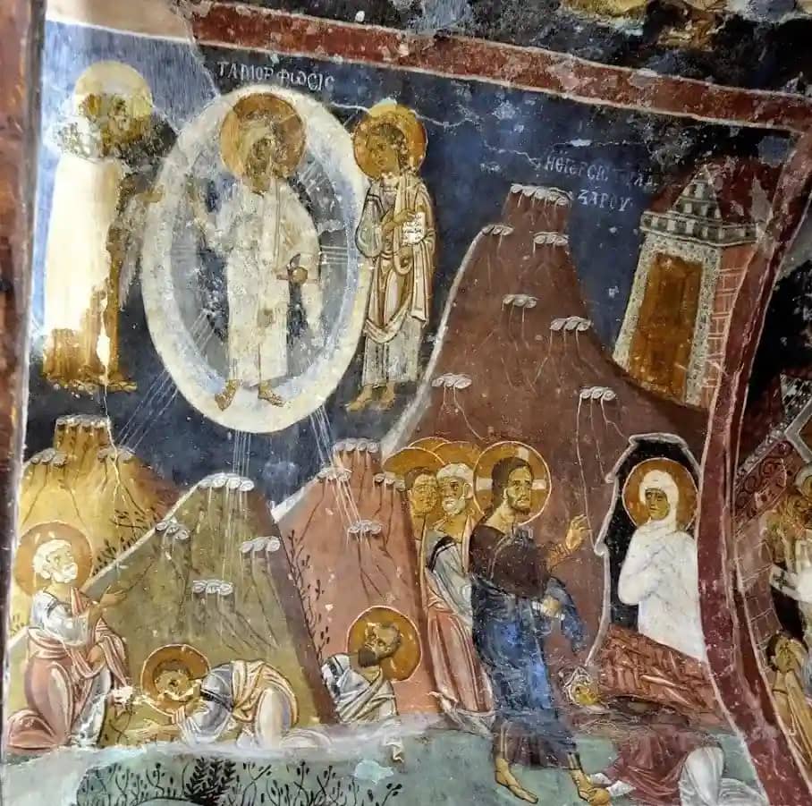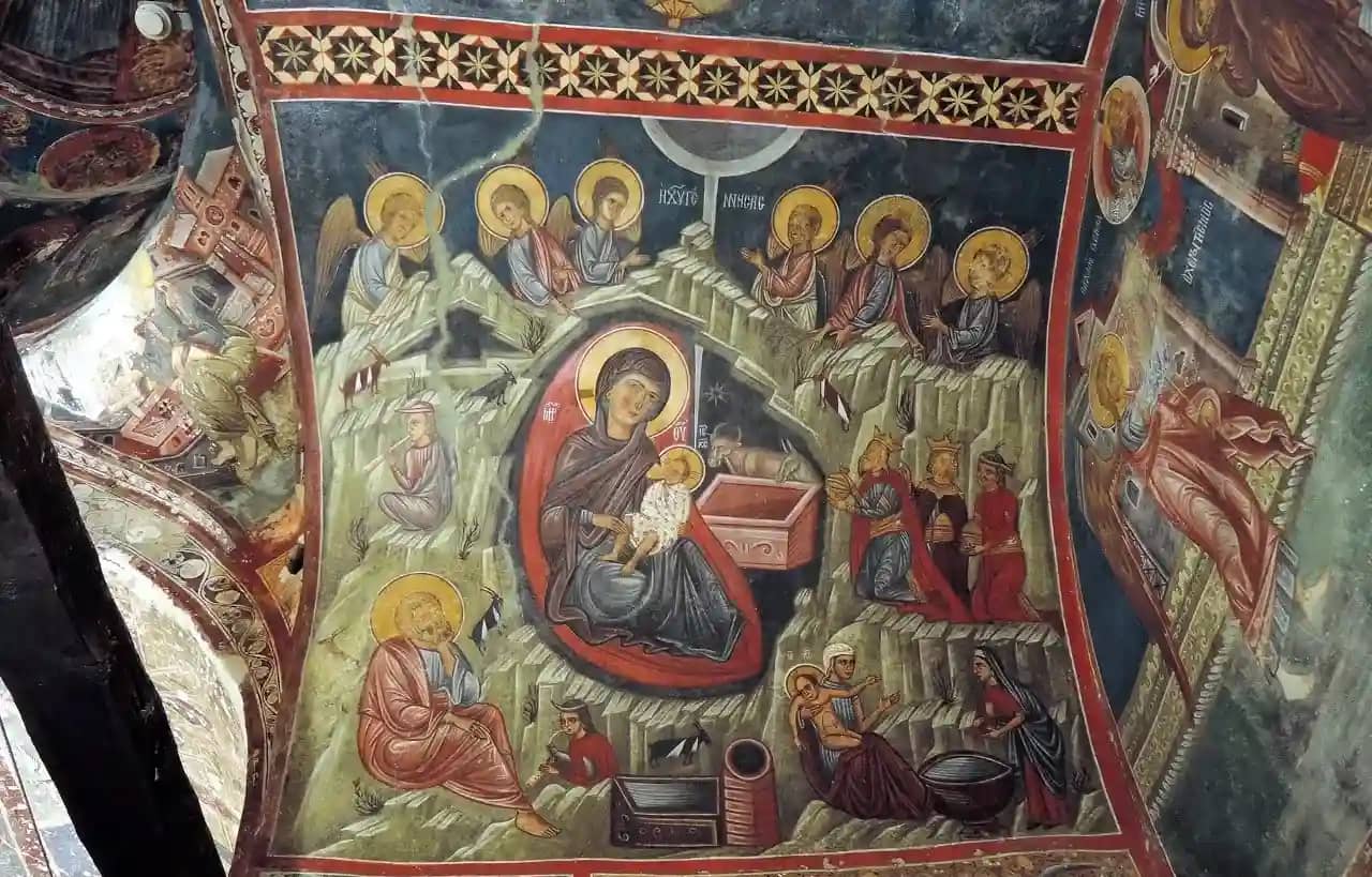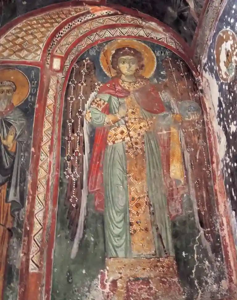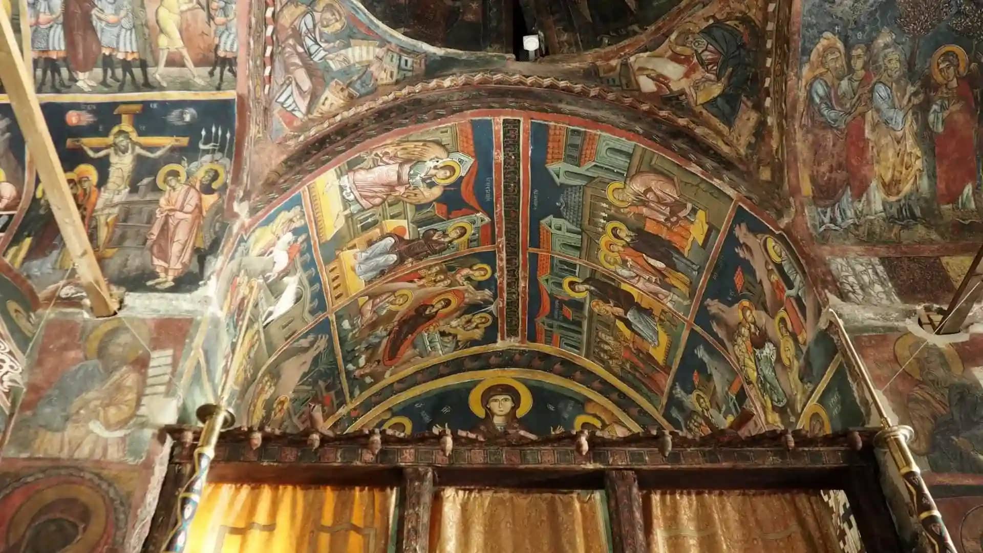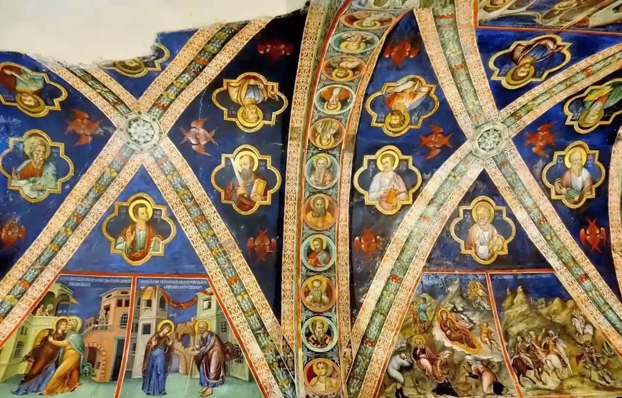 • Фрески XII века включает в себя росписи юго-западной части церкви, притвора и других мест. Среди росписей сцены Судного дня, «Святой Николай», «Сорок мучеников», «Сретение Пресвятой Богородицы».