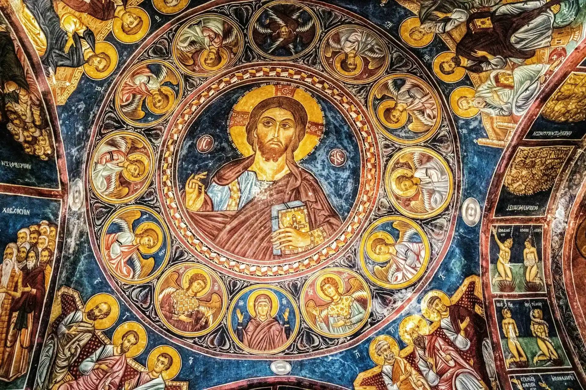 • Большое количество росписей сделано в XIV веке. Росписи на куполе, барабане купола, арке, восточном и южном сводах и в притворе выполнены в этом периоде. Это «Пантократор, окружённый Ангелами» под куполом и «Пророки» в барабане купола.