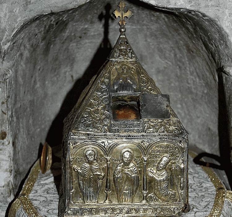 Между часовней Иоанна Лампадиста и латинской часовней в специальной нише помещены мощи св. Иоанна Лампадиста. Русский монах и путешественник Василий Григорович-Барский, который побывал здесь в 1735 году, в своих записках писал, что поклонился этим мощам.