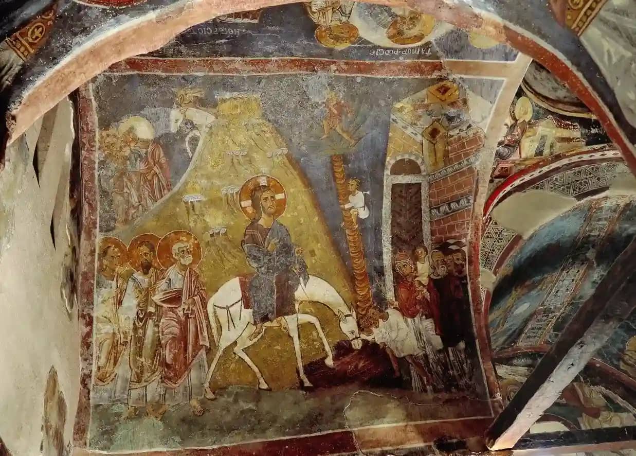 • Самые ранние фрески относятся к XI веку. У них чёткие линии и ограниченная цветовая гамма. Такие росписи наполнены глубокой духовностью. Среди картин сцены из жизни Иисуса: «Вход Господень в Иерусалим», «Воскрешение Лазаря», «Успение Девы Марии» и другие.