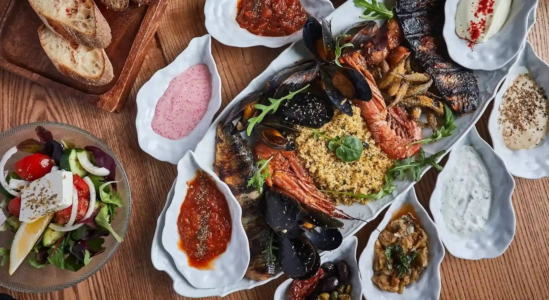 Кухня кипрской таверны отражает многовековое смешение культур. В меню обязательно присутствует клефтико — баранина, томлённая в печи несколько часов до невероятной мягкости. Название связано с греческими повстанцами-клефтами, которые готовили мясо в земляных ямах, чтобы дым не выдал их местоположение. Популярен также стифадо — рагу с луком-шалот в винном соусе, мусака и долмадес — виноградные листья с рисом.